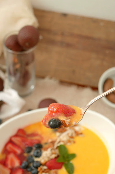 SMOOTHIE BOL DE MANGO, FRESAS Y AGUAJE DEL AMAZONAS