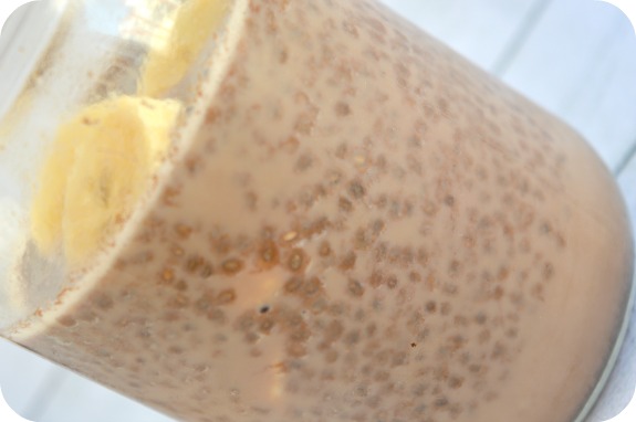 - 300ml de leche- 3 cucharadas de chia- 1 cucharada de cacao en polvo- 1 plátano