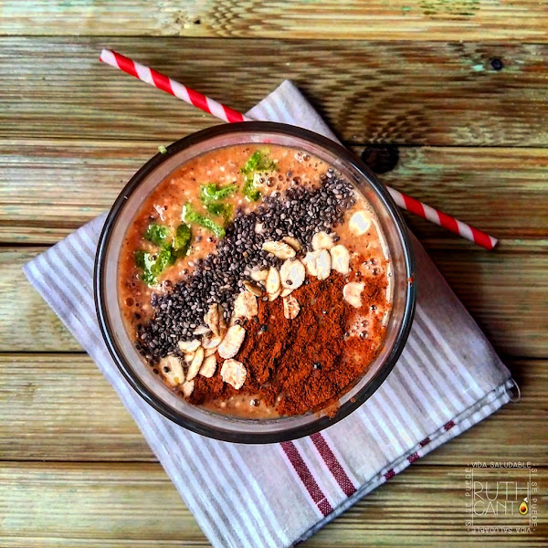 Echar todo al vaso de la batidora, triturar y añadir, un poquito más, por encima un poquito de chía, canela y ralladura de limón.