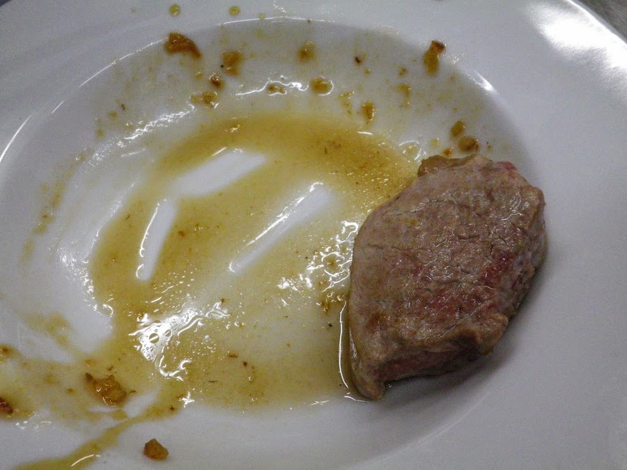 Cortamos la cebolla y salpimentamos el solomillo por las dos caras. Ponemos aceite en una sartén y doramos la carne. Retiramos y en la misma sartén incorporamos la cebolla. Sofreímos hasta que empiece a coger color.