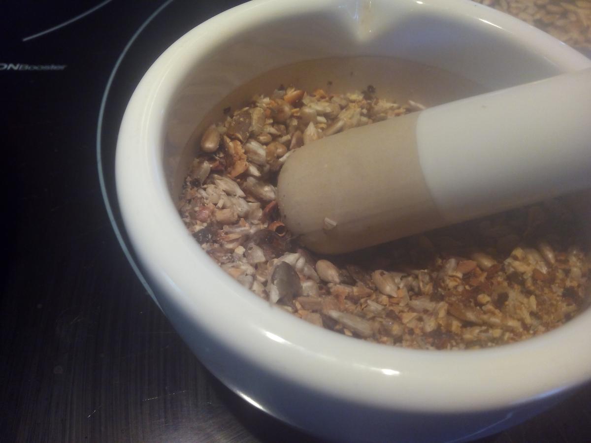 1/2 taza de mezcla de pipas de girasol y calabaza (opcional)