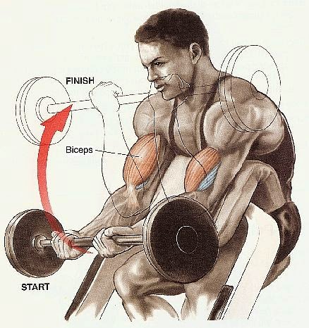 Este ejercicio consiste, sentado o de pie con los brazos apoyados en el banco "predicador" agarramos la barra con la palma hacia arriba (supinación) y flexionamos los brazos hasta una completa contracción del biceps . Su principal característica es que al estar tu codo inmovilizado el grado de aislamiento del bíceps es mayor por este motivo realizara una mayor estimulación de este músculo.