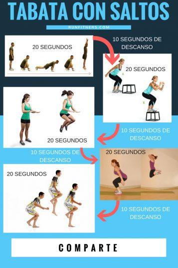 A continuación te dejamos una buena infografía con un ejemplo de una rutina tabata que puedes hacer en tu casa, gimnasio o parque.