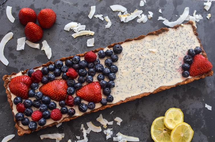 Una deliciosa Tarta de Limón y Amapolas!! El postre perfecto para cualquier ocasión. Sin azúcar refinada, sin gluten y vegano. Creo que realmente esta Tarta es una de mis recetas favoritas.