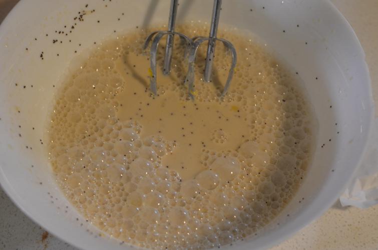 Poner la lata completa de crema de coco en un recipiente. Agregar el otro cuarto de azúcar de coco, 20 gotitas de stevia, la semillas de amapola, la ralladura de limón y el jugo de limón.