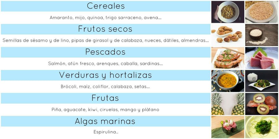 Cereales, especialmente el amaranto, la quinoa, el trigo sarraceno, la avena, el arroz integral y el rojo, el mijo...