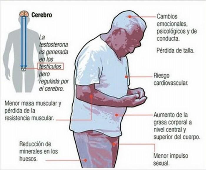 La testosterona es la hormona masculina fundamental. Cuando somos jóvenes la testosterona fluye a raudales por nuestra sangre, brindando fuerza física y energía sexual. Además tiene la capacidad de mantener una buena musculatura, y las características masculinas, entre otras características importantes. A medida que se envejece, los niveles de testosterona disminuyen en el organismo. Como resultado de esta disminución en el flujo de testosterona, se comienza a perder masa muscular y fuerza, la libido disminuye considerablemente. La baja de esta hormona da lugar a la “Andropausia”. Es decir, a la menopausia masculina. No sólo los hombres poseen esta hormona en sus organismos, las mujeres igual poseen testosterona pero en niveles más bajos.