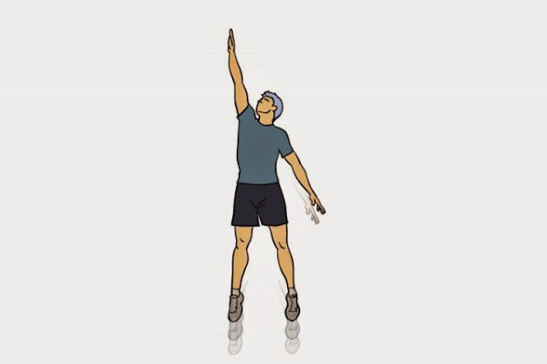 Te colocas al lado de una pared medimos la diferencia de la altura entre el brazo extendido y el punto más alto del alcance después de un salto con impulso. Realiza al menos 3 intentos y eliges el mejor.