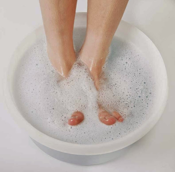 3- Después, introduce los pies o el pie afectado por los hongos, en esta mezcla y deja que reposen dentro durante unos 10 minutos.