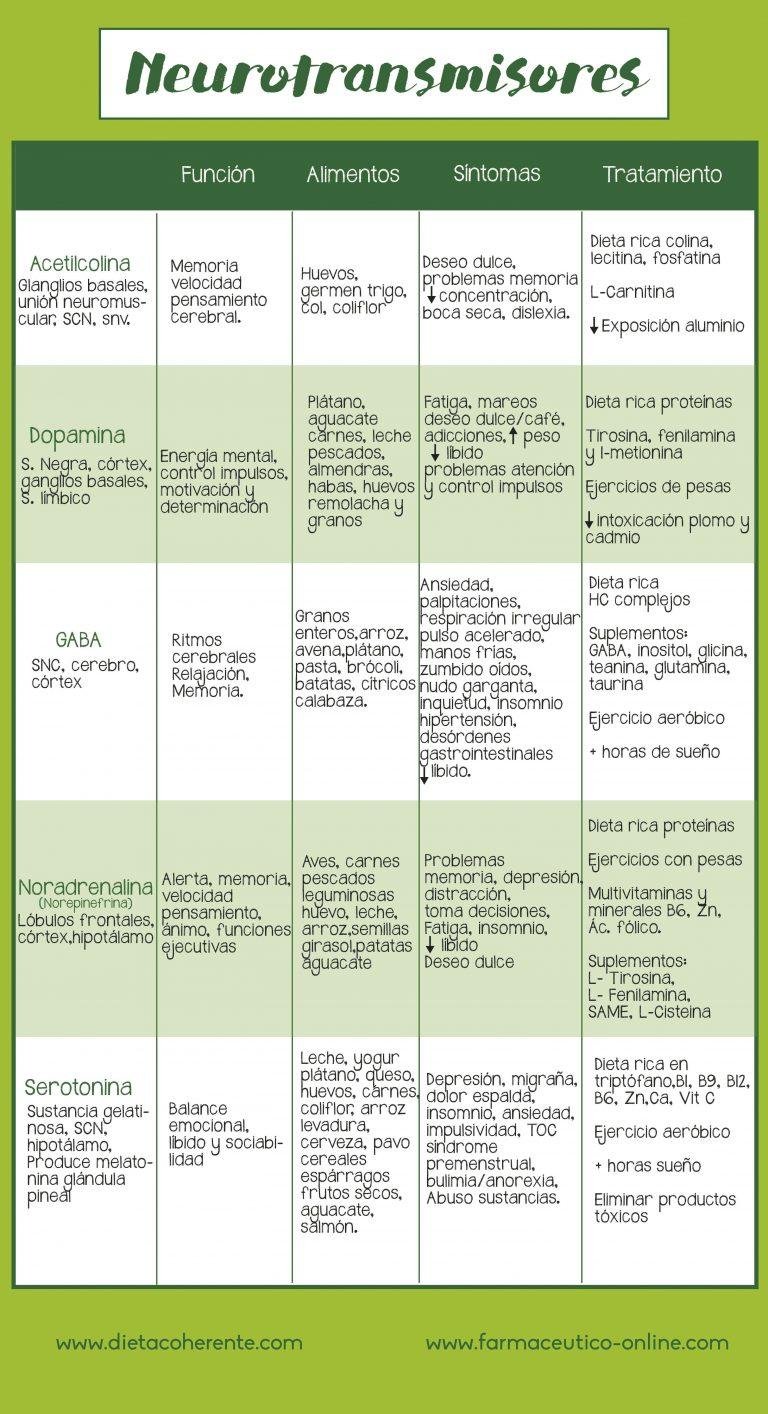 Los neurotransmisores más importantes son acetilcolina, dopamina, adrenalina, noradrenalina, serotonina y ácido gamma-aminobutírico o GABA.