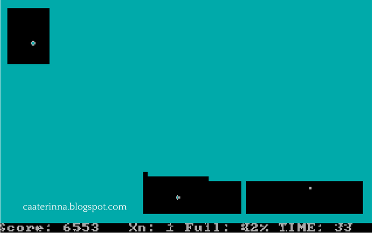 Xonix consiste en encerrar las bolas blancas sin que el cuadradito negro te mate. Cuanto más tiempo tardes en completar la pantalla, más cuadraditos negros saldrán.