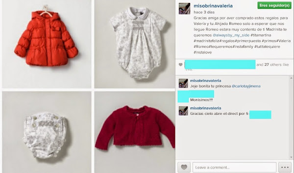 Hace varias semanas abrí mi cuenta en instagram (sí, lo sé, lo critico y la abro, soy una incoherente) y comencé a seguir a varias chicas. Una de ellas, Carlota, estaba a puntito de dar a luz a su primera hija, Jimena. Su galería de IG se componía de chupetes de Dior, bugaboos, modelitos de Pili Carrera, Nanos, Dulces, bolsos de Carolina Herrera regalitos de su "maridín"... Joder, cómo vive la gente, pensé yo. También seguía a una amiga de esta chica, Marta, intimísimas a pesar de no conocerse en persona y haber contactado por instagram tan sólo un par de semanas antes (según ellas mismas contaban). La galería de esta chica era más de lo mismo: Tous, Chanel, más modelitos de bebés de los de a 200 â?¬ el vestidín... la diferencia con la amiga radicaba en que si la primera era que esta segunda añadía a la galería un sinfín de fotos de su sobrina Valeria, así como de todas aquellas cosas que le compraba.