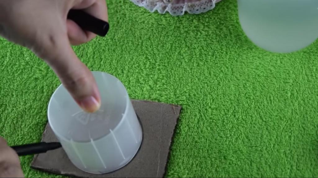 Con un marcador convencional o normal de esos sharpie, vas a marcar todo el contorno de la tapa antes mencionada, procura que quede lo más circular posible, en caso de que te equivocas lo haces del otro lado del cartón, pero la idea es que quede una circunferencia lo más perfecta posible, puedes utilizar el color que gustes en lo personal suelo utilizar el negro.