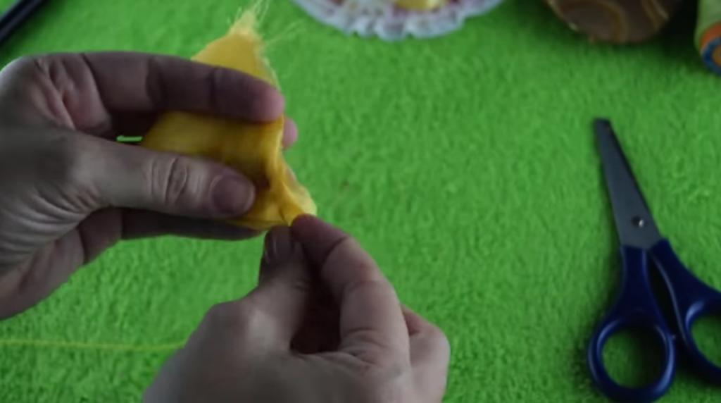 Realizaremos una costura a mano de forma zig zag por la zona indicada para cerrarla y a la vez crear un pequeño fruncido.