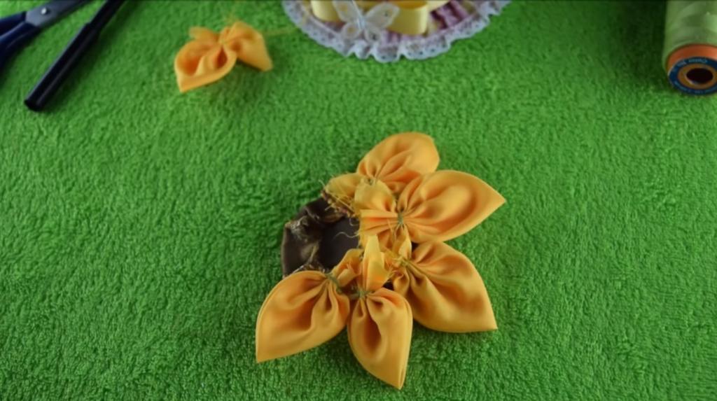 Por último y menos importante, una vez tengamos todas los pétalos necesarios para rellenar la flor, procedemos a verter un poco de pegamento en sus puntas y las pegamos en la parte trasera de la pieza circular que hicimos antes.
