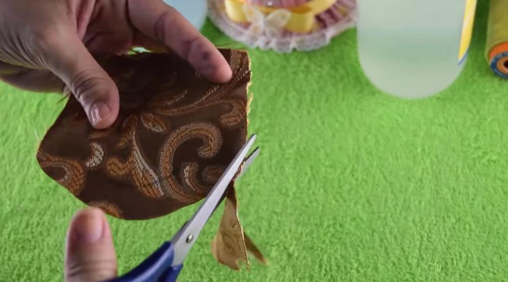 Realizados los pasos del pegamento procedemos a colocar la tela en los laterales empujándola hacia la parte interior de la pieza, esto, para que el mismo pegamento agarre la tela seleccionada.