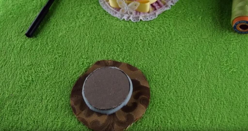 La ubicaremos en la zona principal de la tela antes mencionada, y sobre la esponja fina vamos a colocar la pieza de cartón anteriormente recortada.