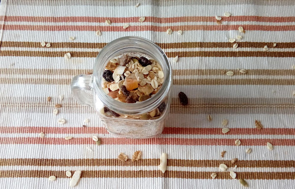 Una mezcla de muesli con yogur y fruta, es muy fácil de hacer y rápido, en un momentito lo tienes hecho.