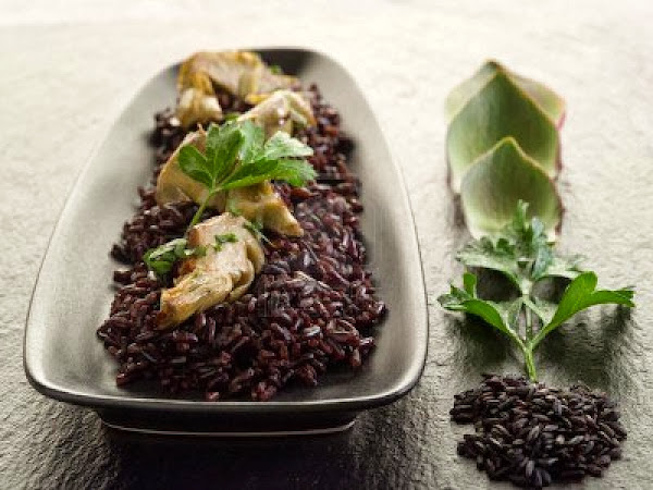Arroz blanco o integral (una taza en crudo por persona) con salteado de alcachofas, puerros y espárragos.