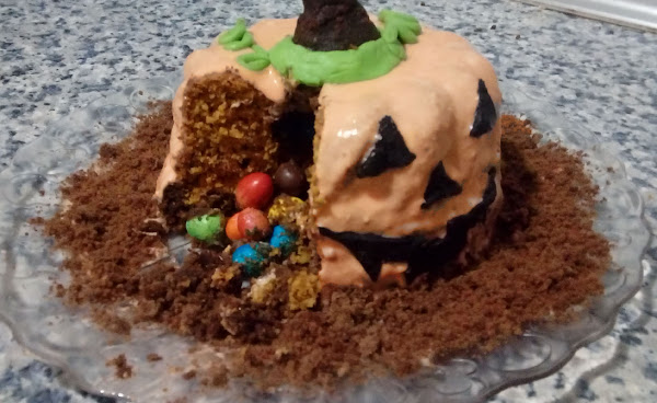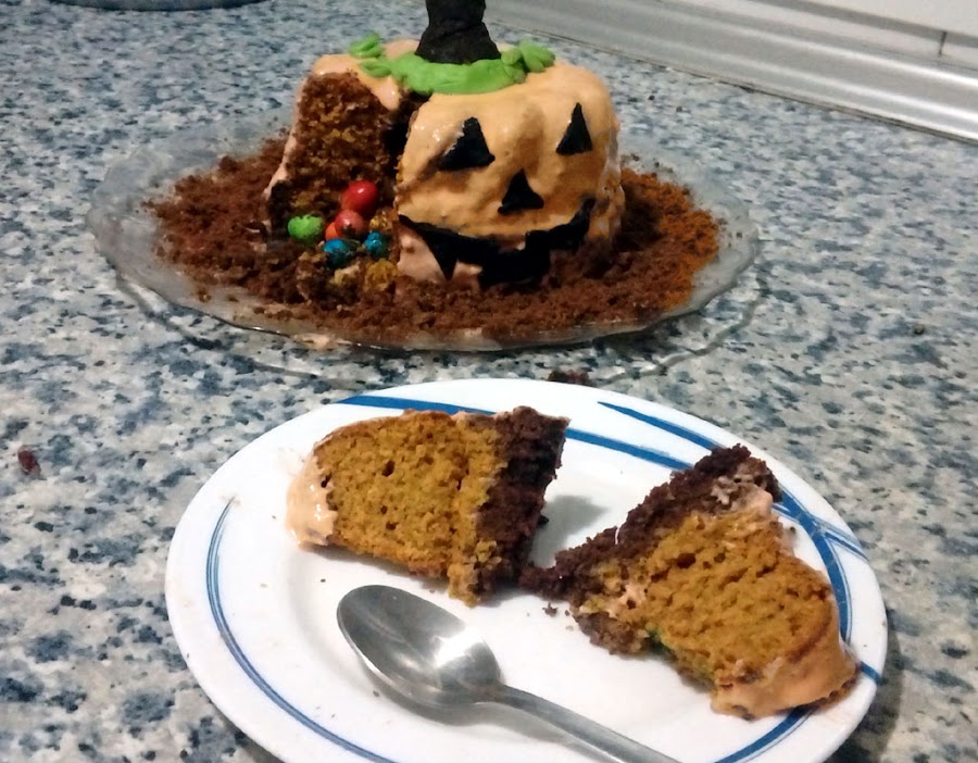 Yo le puse con un poco de masa del bizcocho de chocolate la forma del tallo de la calabaza.