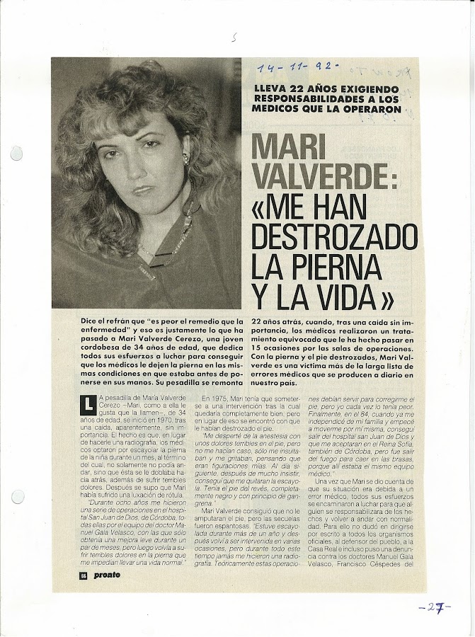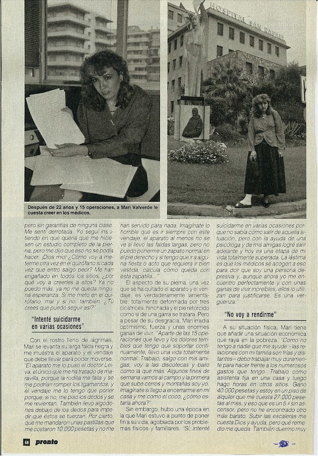 Son más de 40 años pidiendo justicia, pero jamás la habido y dudo ya que la haya, jamás a intentado curarme solo hacer más y más experimentos, más de 40 años pidiendo ayuda pero jamás nadie me ayudado de verdad las consecuencia ahora ya casi no puedo andar y la insolidaridad y la crueldad solo me dejado una salida.