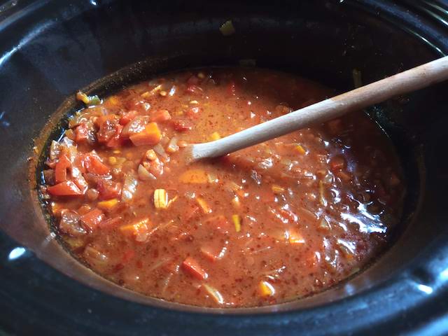 A la mañana siguiente colocas las lentejas coladas (sin el agua de remojo) en la olla lenta.