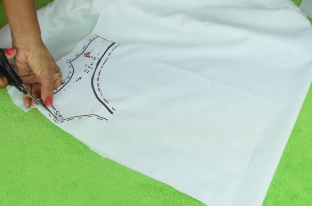 Una vez fijado con alfileres ambas piezas procedemos a tomar nuestras tijeras para tela y recortamos todo el contorno, en la parte inferior de la misma vamos a guardar un aproximado de 1 cm.