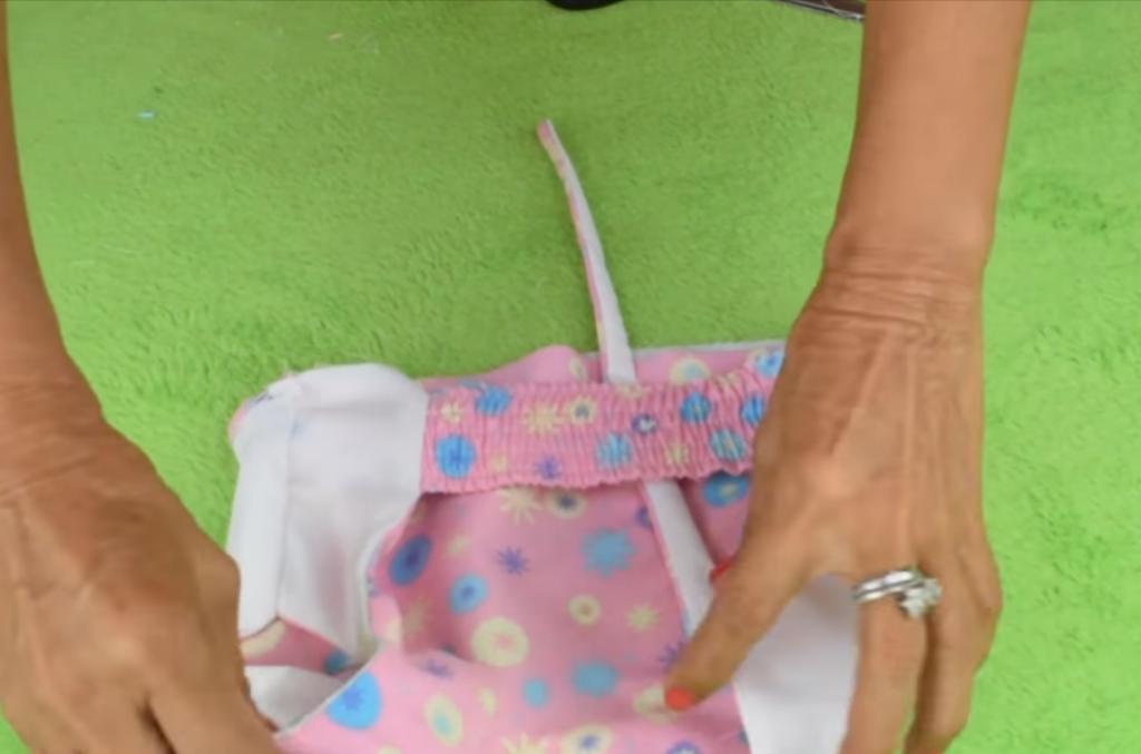 Lo siguiente que vamos a hacer es tomar la pieza cuadrada que hemos recortado y dentro de esta ubicaremos un elástico el cual servirá para la cintura.