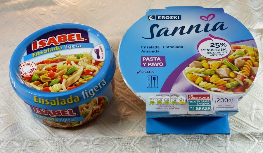 Y para cenar, como muchas veces no me apetece prepararme nada, llevo una ensalada de pasta ligera, yo conozco estas 2 y la de supercor, en instagram os puse una foto de la marca aliada, si conocéis otras ponérmelo en comentarios. Las 3 están bastante bien porque son ligeras (de verdad lo son, no es como otras que dice que son ligeras y en realidad lo único que tiene de ligeras es el nombre). Y hablando de vida sana y comida ligera... un blog que sigo desde hace tiempo y tiene unas recetas muy interesantes es el de Vikika.