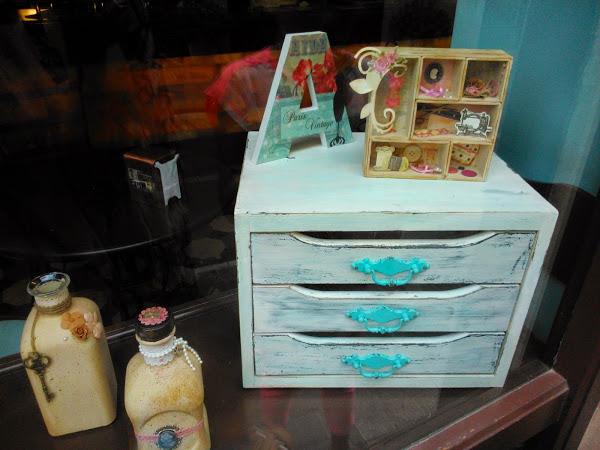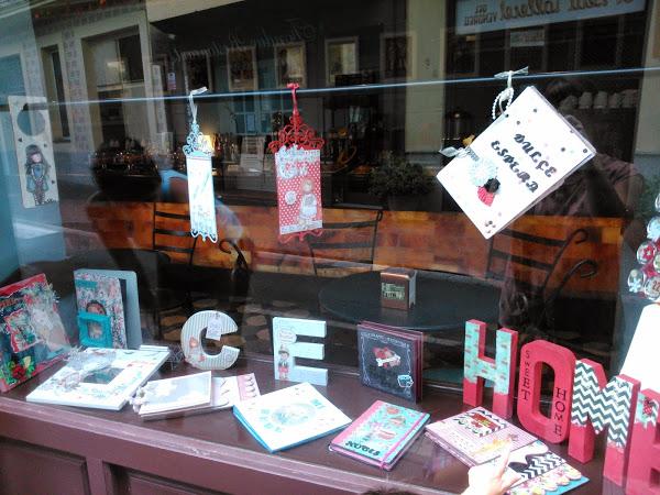 Os dejo con algunas fotitos de cómo quedó el escaparate después de dos horas y media de mover las cosas de aquí para allá jeje.