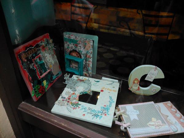 La exposición es en una chocolatería en el pueblo donde vivo,( que he de decir que esto del scrap casi no se conoce aquí y la gente me mira un poco raro. o como me dijo mi primo el otro día cuando le dije que hacia scrap y me contestó: ¿ y eso que es? ¿que destrozas los libros?, supongo que buscó la definición rápido en internet.)