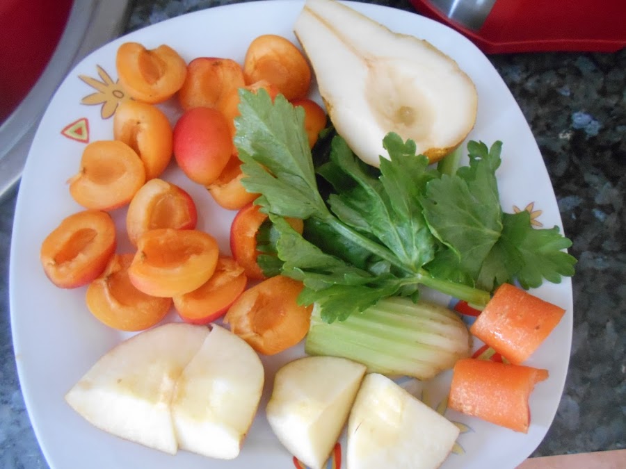 Lavamos muy bien toda la fruta y la verdura y desechamos los huesos.