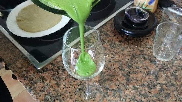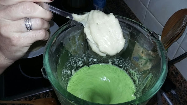 Puso a batir y mientras añadió las dos cucharadas de biomasa de plátano verde