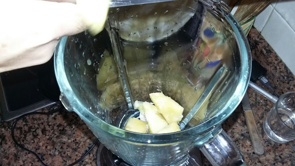 Primero peló la piña (nada de tirar la cáscara) porque luego hizo una infusión que ya os contaré también