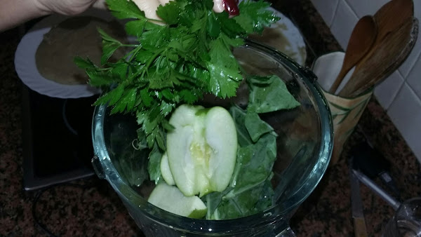 Luego añadió la berza, la mitad de la manzana una vez quitadas las semillas, el perejil y el zumo de limón
